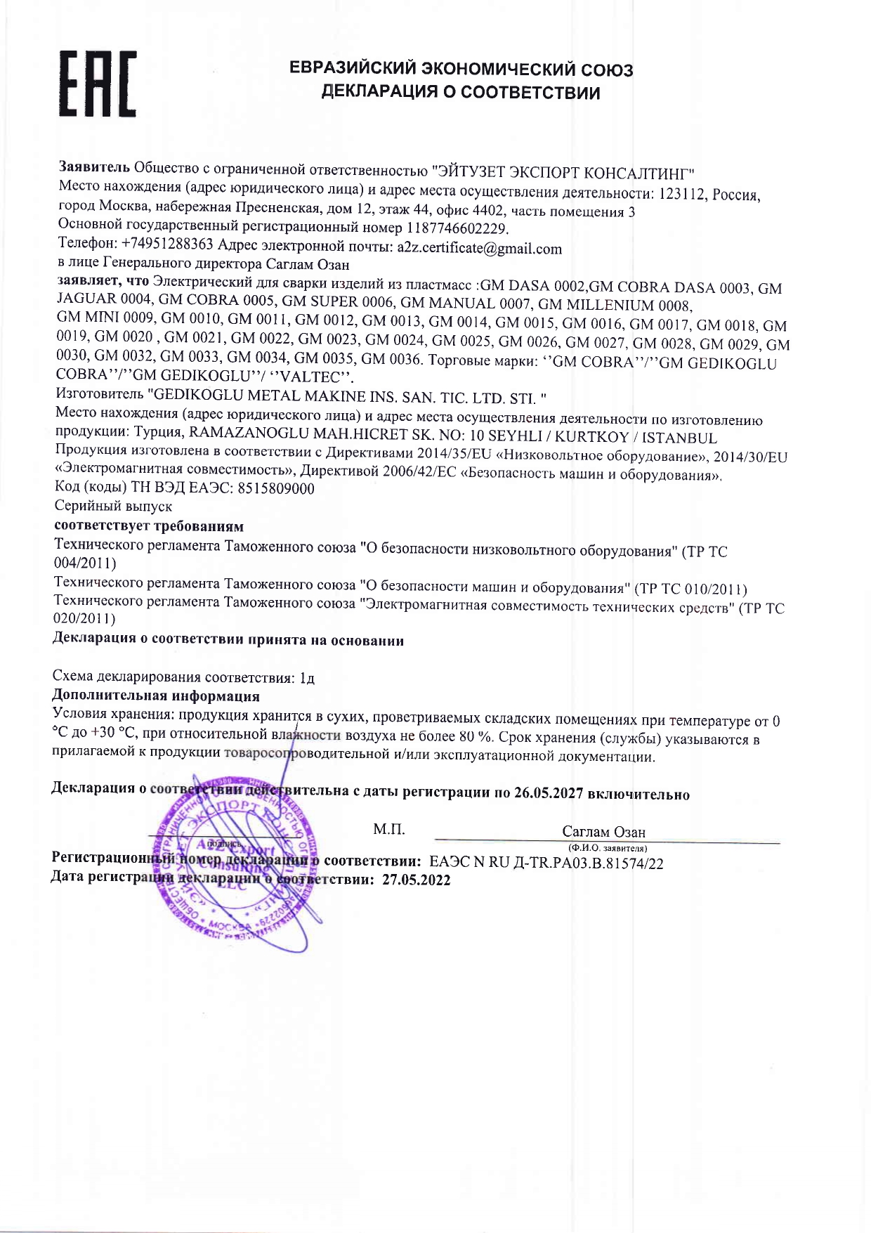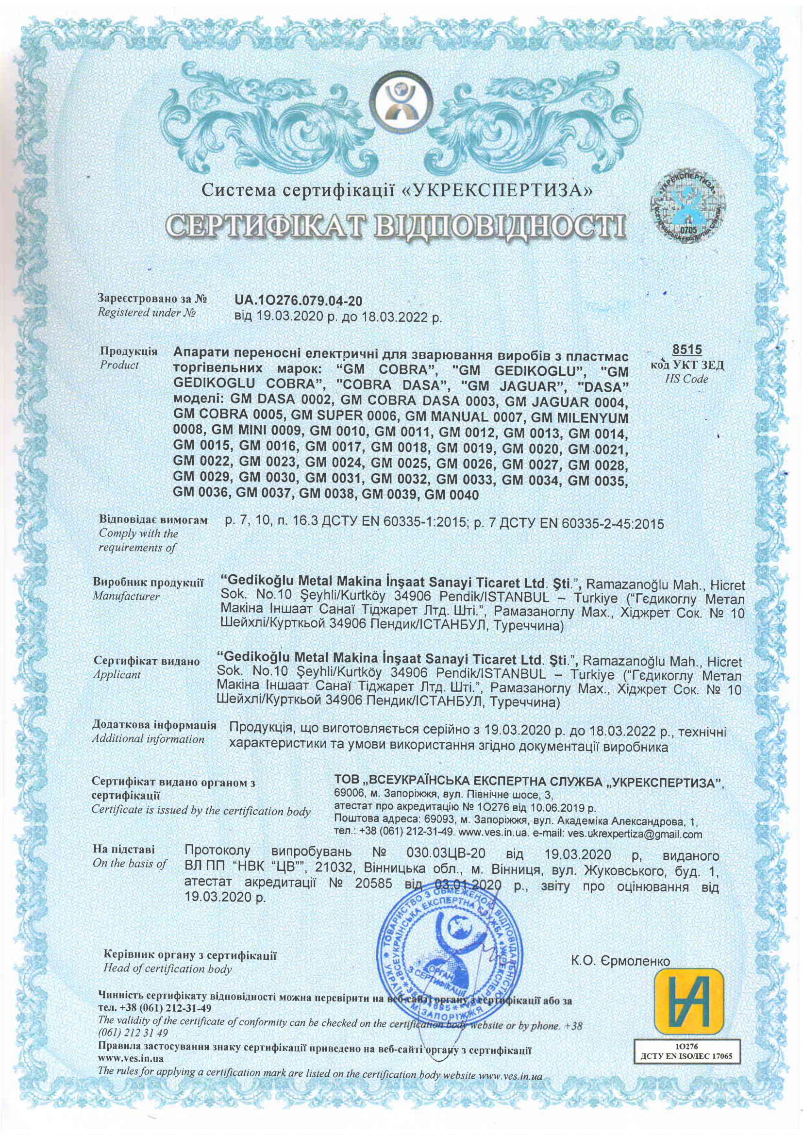 CE SERTİFİKASI