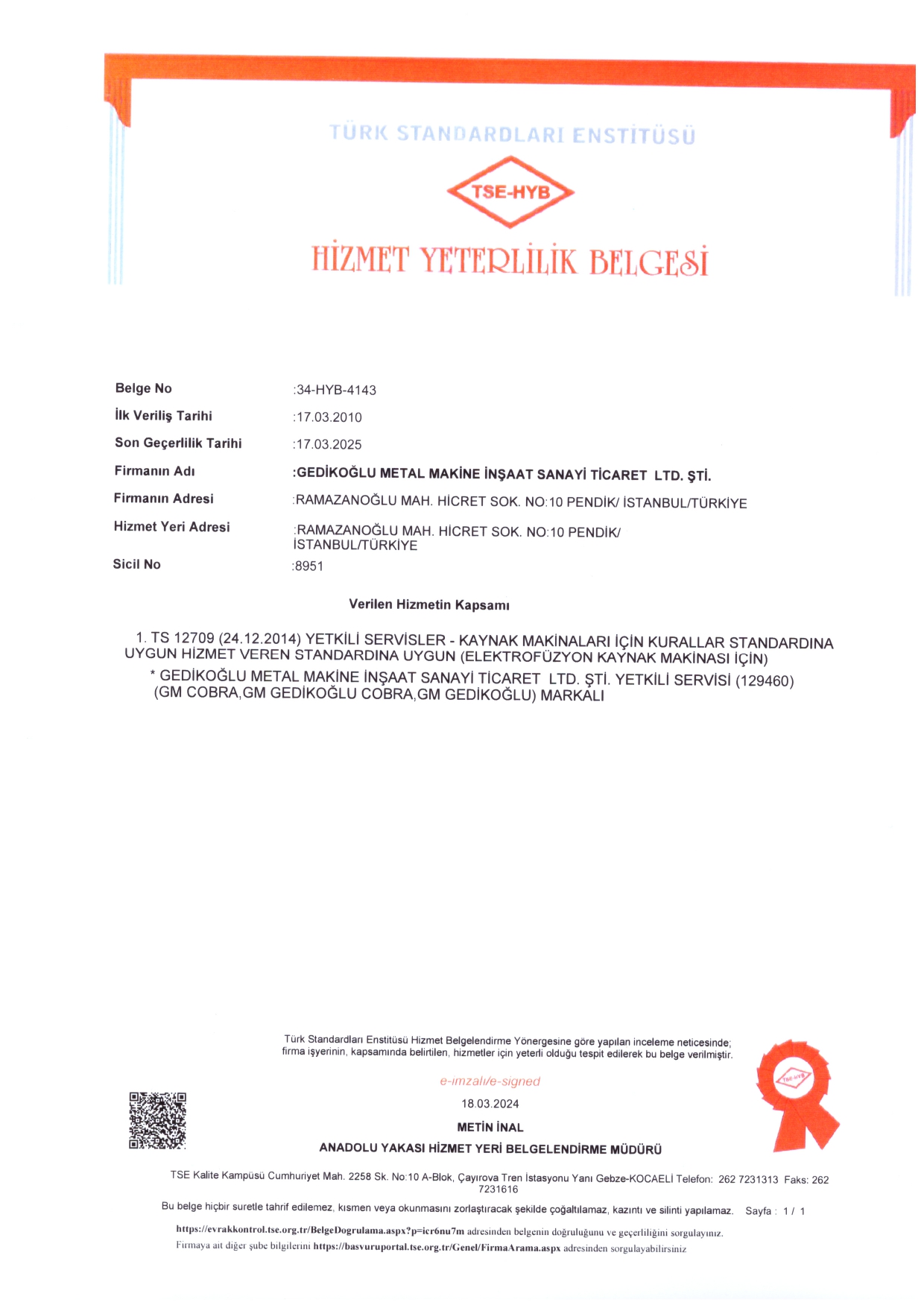 HİZMET YETERLİLİK BELGESİ